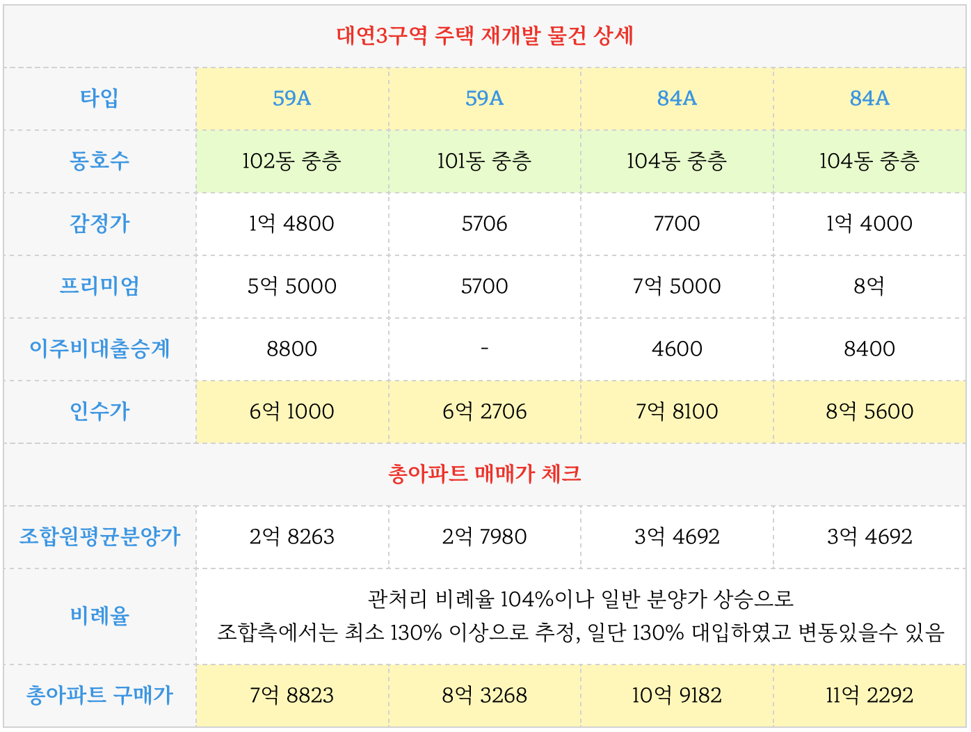대연3구역 재개발 59타입과 84타입의 물건을 소개해 드리겠습니다.