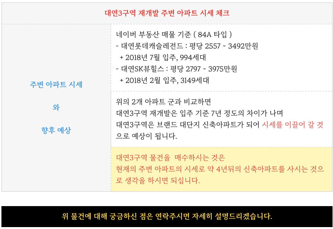 대연3구역 재개발에 관심이 있으신 분들은 연락 주시면 자세히 설명 드리겠습니다.
