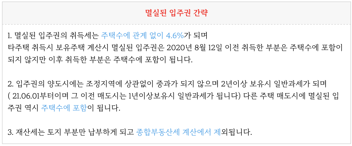 현재 매수하시는 것은 관처 이후 멸실된 조합원 입주권을 매수하시는 것으로 아래 부분 참고하시면 됩니다.