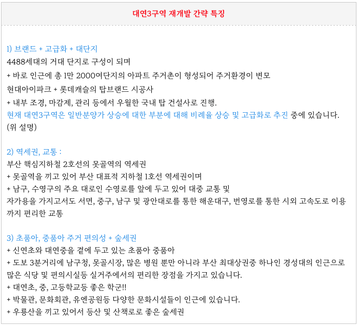 역세권 대단지 대연3구역 재개발 간략한 특징을 간략히 정리 해드립니다.
