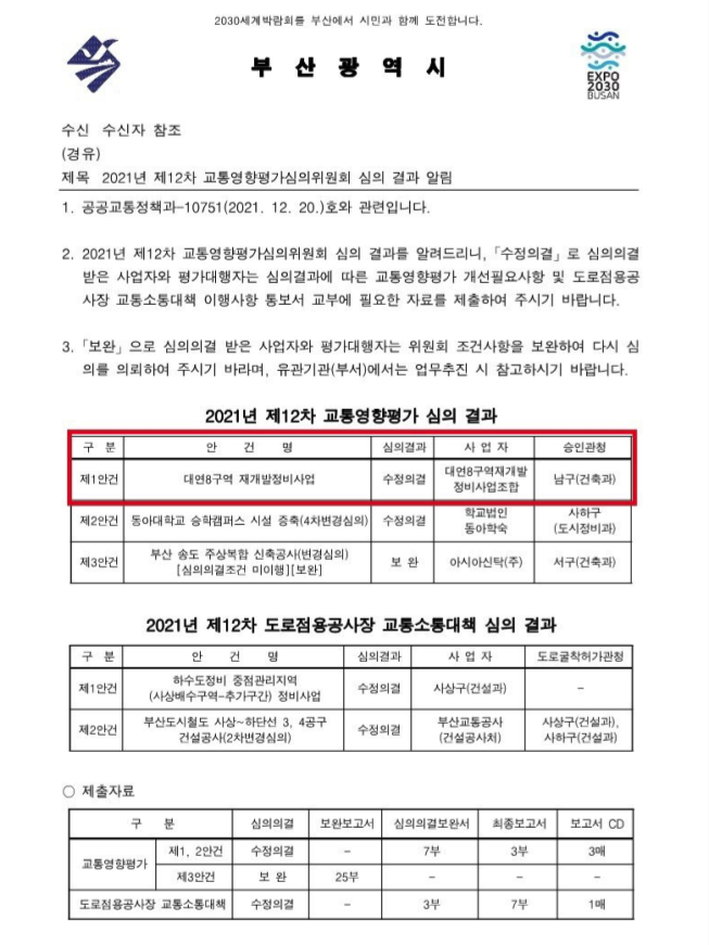 실거주좋은 남구 대연8구역 재개발의 최근 진행 상황 입니다.