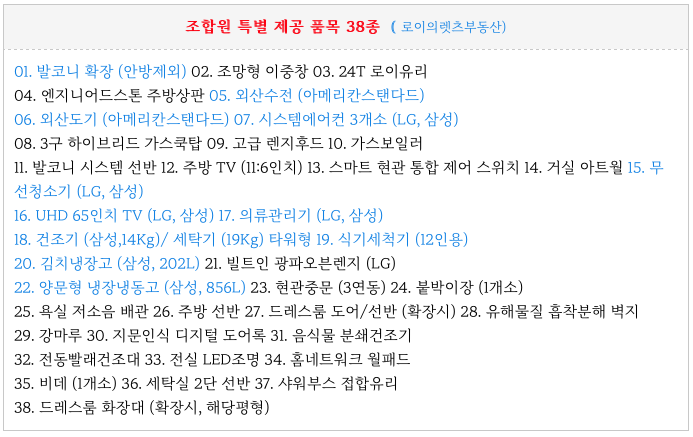 문현3구역 재개발 조합원에게 제공되는 무상 품목들입니다.