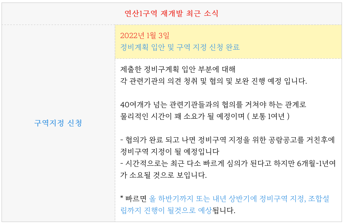 연산1구역 재개발의 최근 소식 입니다.