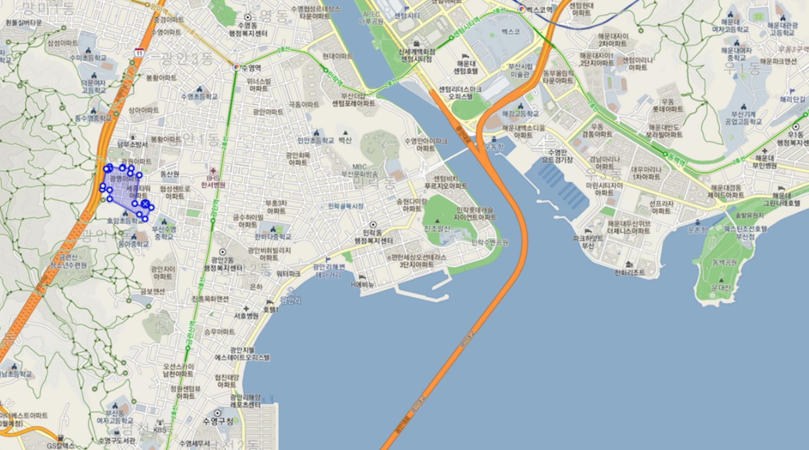 물론, 광안역 아래의 새로운 예정지들의 진행에 따라 변화가 있을수도 있겠습니다.