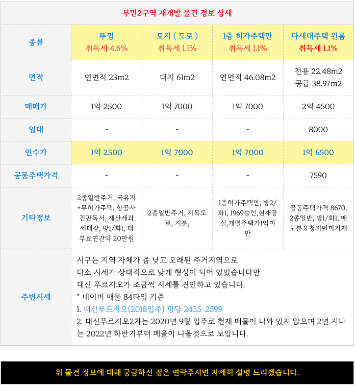 부민2구역 재개발에 대해 궁금하신 점은 연락주시면 자세히 설명드리겠습니다.