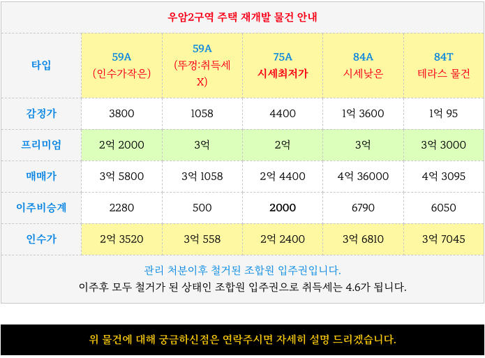 우암2구역 재개발 타입별 매물