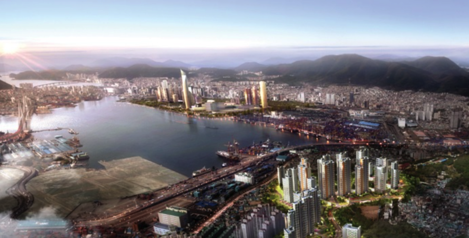 북항 일대를 바라보는 바닷가 언덕위의 아파트 단지로 건설이 되어
