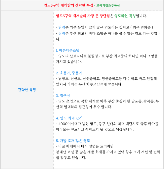 건축심의 앞둔 영도5구역 재개발의 간략한 특징을 다시 한번 정리 드립니다.