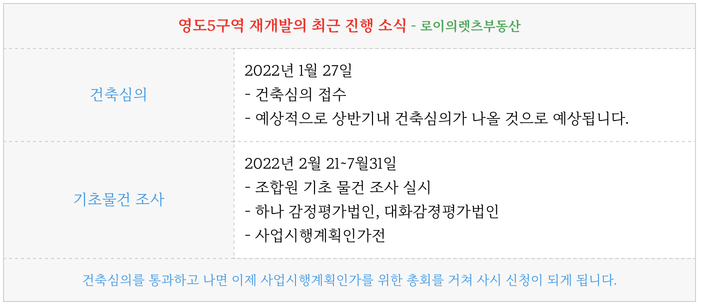 영도5구역 재개발의 지금까지의 진행상황과 향후 진행 예상 일정 부분은 아래 페이지를 참고 부탁드립니다.