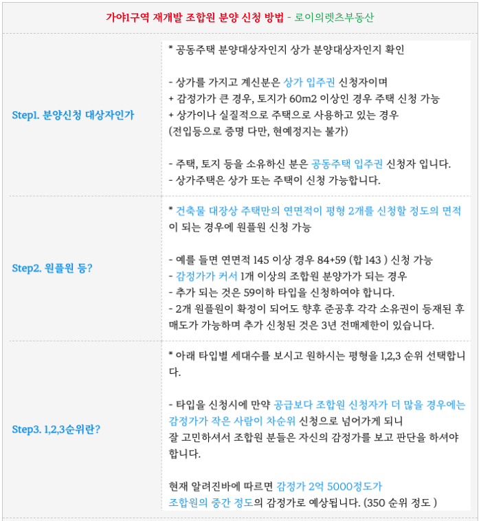 가야1구역 재개발 평형 신청 방법과 체크 사항 과 현 괜찮은 매물을 소개해 드리겠습니다.