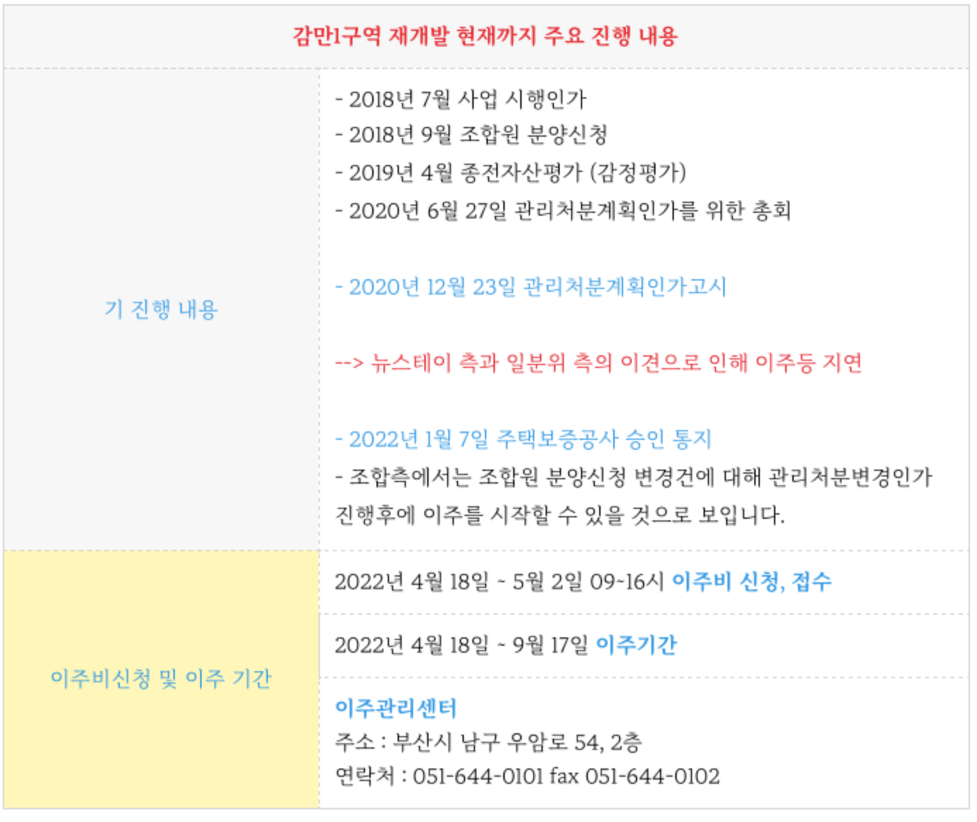 감만1구역 재개발은 최근 소식은 이주 일정 공지가 되었습니다.