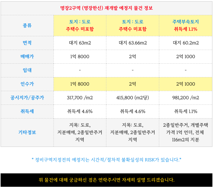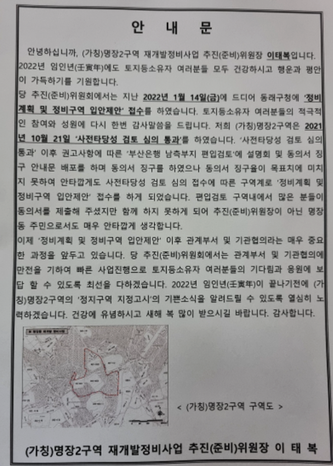 구역 지정 신청된 명장2구역 재개발 예정지 토지, 부속토지 등 물건 정보 업데이트 소개해 드리겠습니다.
