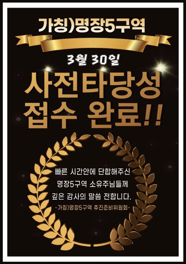 불과 4개월도 채 되지 않아 75%의 동의서와 함께 사타 신청까지 진행되어 놀라운 속도를 보이고 있습니다.