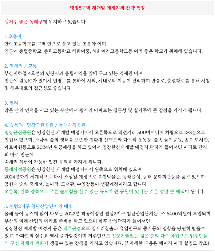 - 실거주 좋은 동래구, 초품아, 역세권, 평지, 숲세권, 센텀2지구첨단산업단지, 주변의 재개발