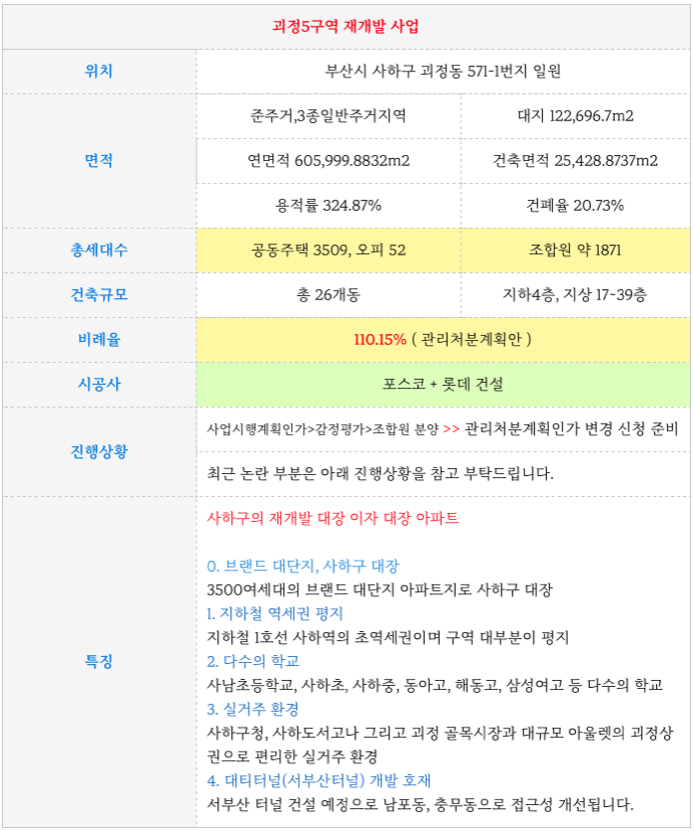 사하대장주 " 괴정5구역 재개발 : 최근상황정리(임시총회등) " + 84A, 108B 최저 매물