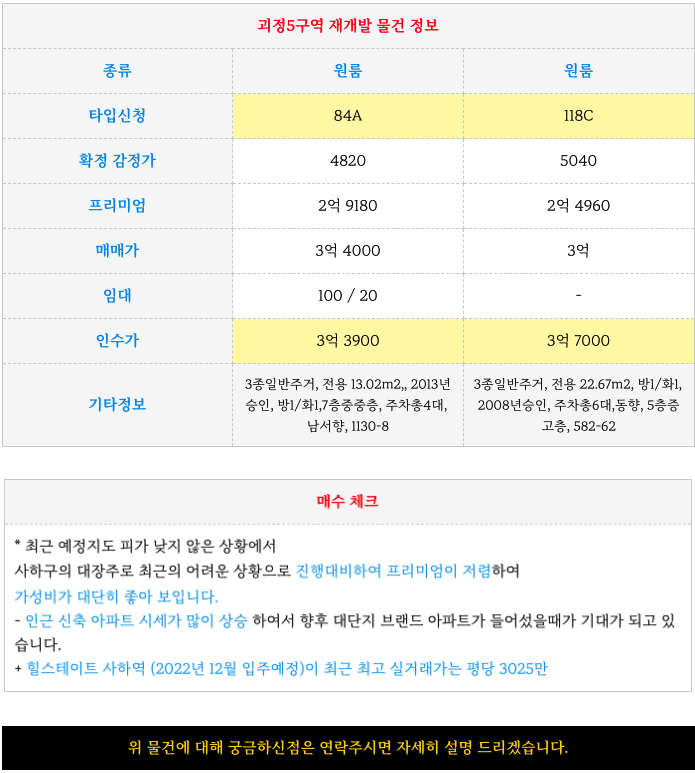 먼저 괴정5구역 재개발 급매 등 시세 최저 물건을 소개해 드리고 구역 설명도 드리겠습니다.