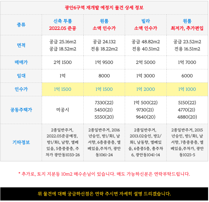 광안6구역 재개발 예정지 인수가 작은 물건 정보를 소개하여 드립니다.
