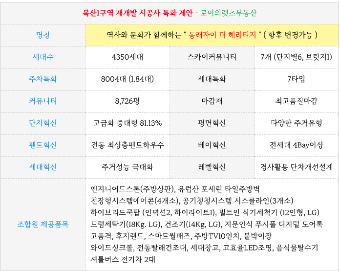 복산1구역 재개발 ( 동래자이 더 헤리티지) 및