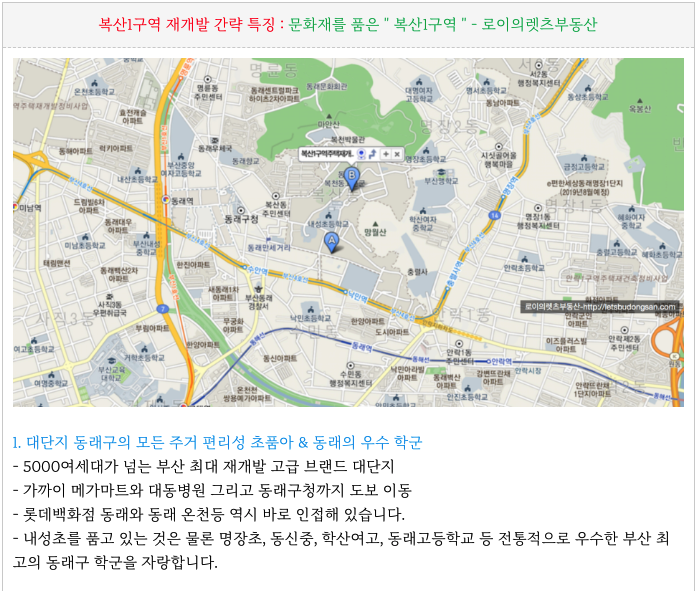 복산1구역 재개발 의 특징을 간략히 정리하였습니다.