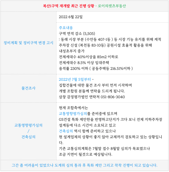 복산1구역 재개발 은 최근 진행 동향 부분 체크해 드립니다.