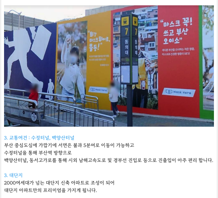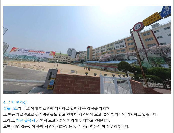 - 초품아, 준역세권, 교통편리, 대단지, 백병원, 홈플러스, 숲세권, 주변환경개선
