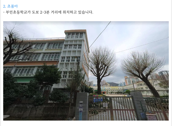 부민초등학교가 도보 2~3분여로 초품아로 불리울수 있습니다.