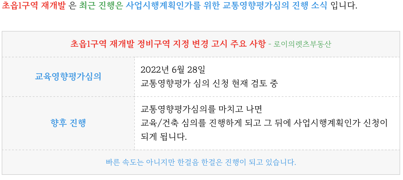 초읍1구역 재개발 교통영향평가심의진행 & 급매