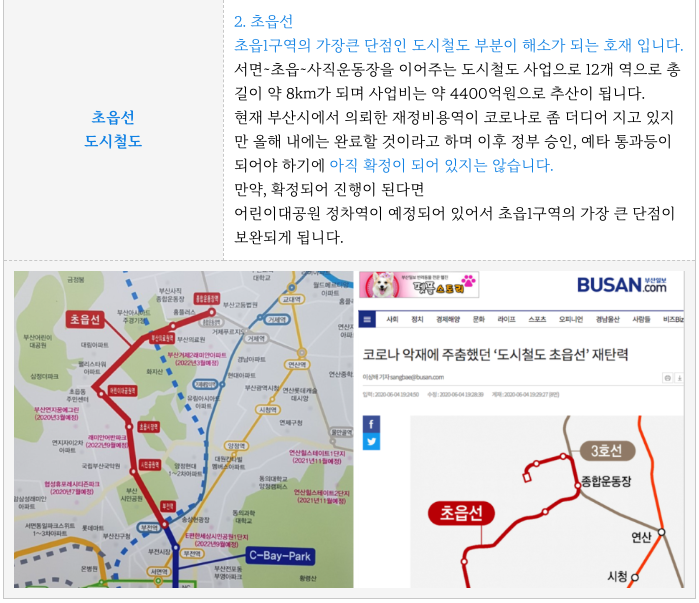 위의 단점 보완을 위해 초읍선이 논의되고 있지만 현재 용역조사중인 상태 입니다.
