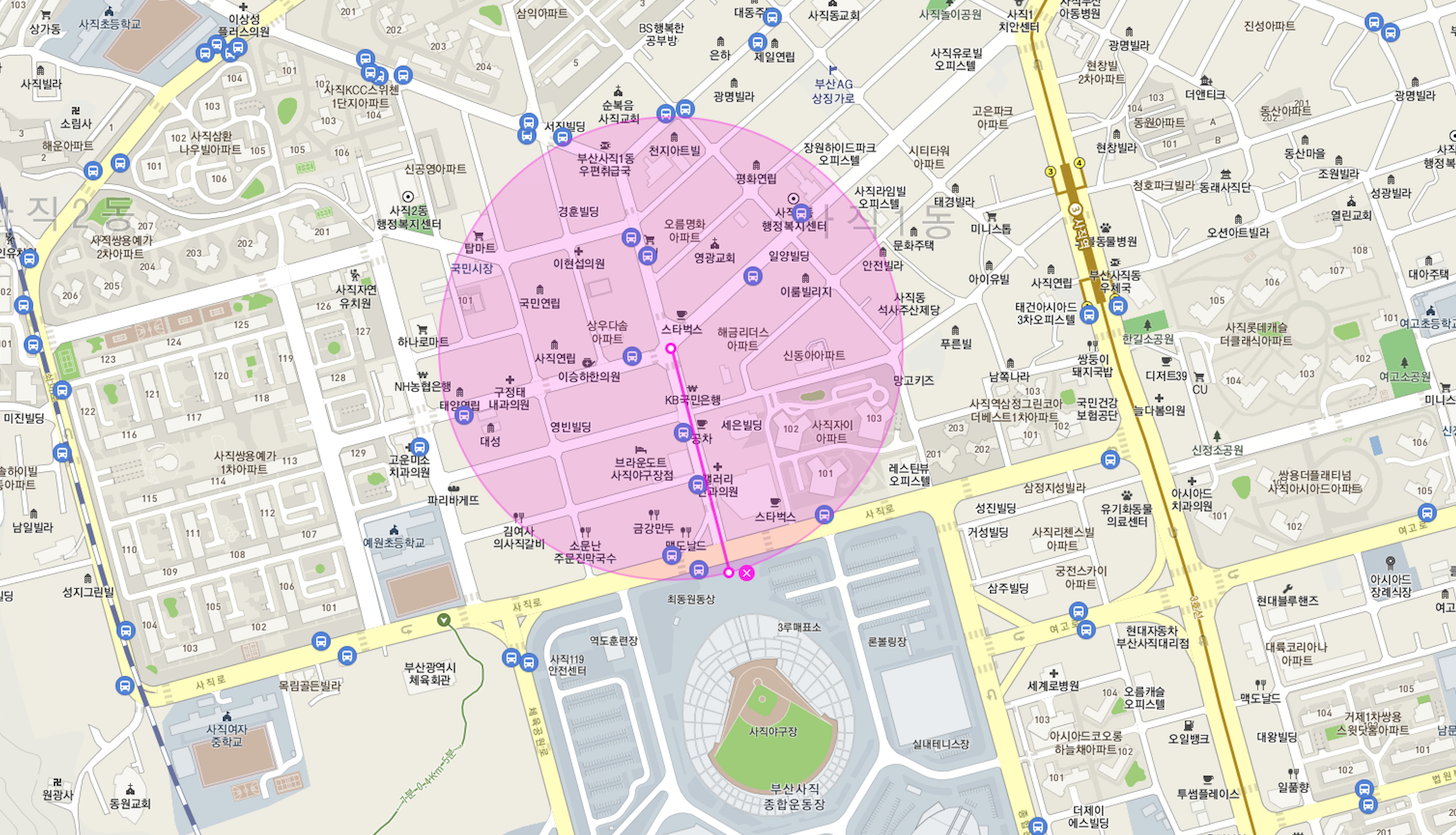 사직쌍용예가와 스위첸 그리고 사직자이를 비롯하여 많은 아파트 단지가 밀접해 있고