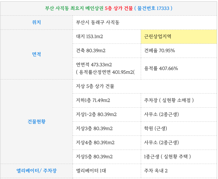 부산 동래구 사직동 대로변 최요지 상가 건물 매매