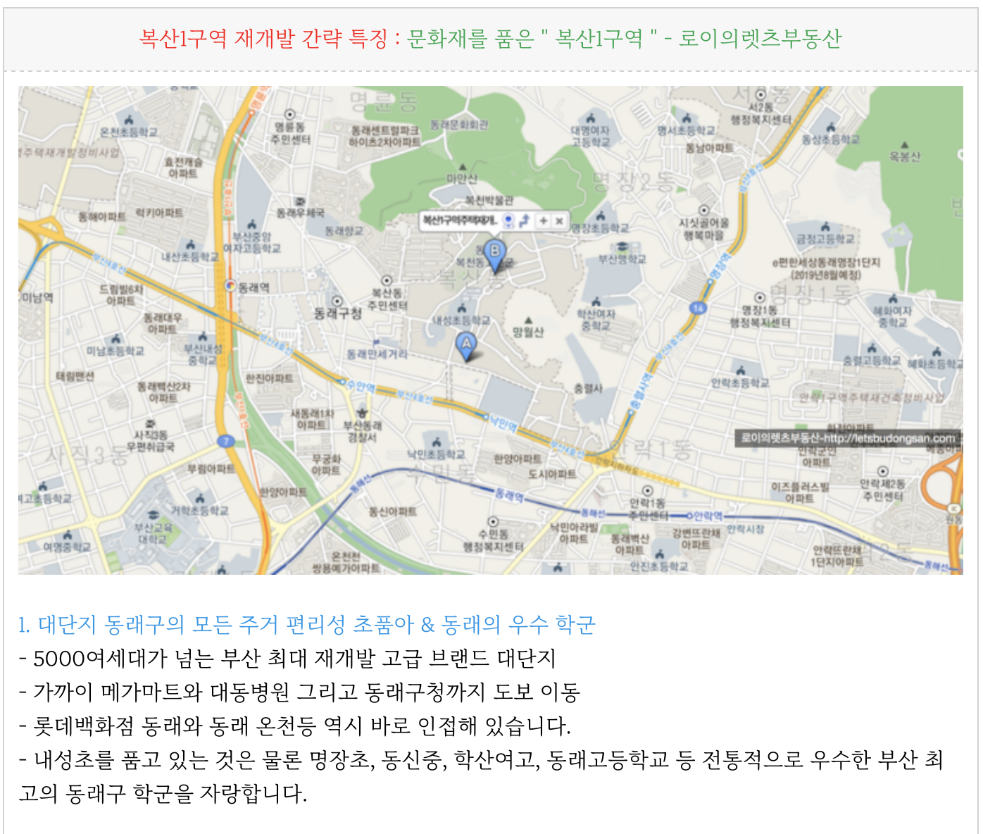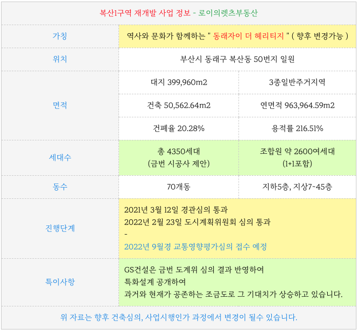 복산1구역 재개발 의 특징을 간략히 정리하였습니다.