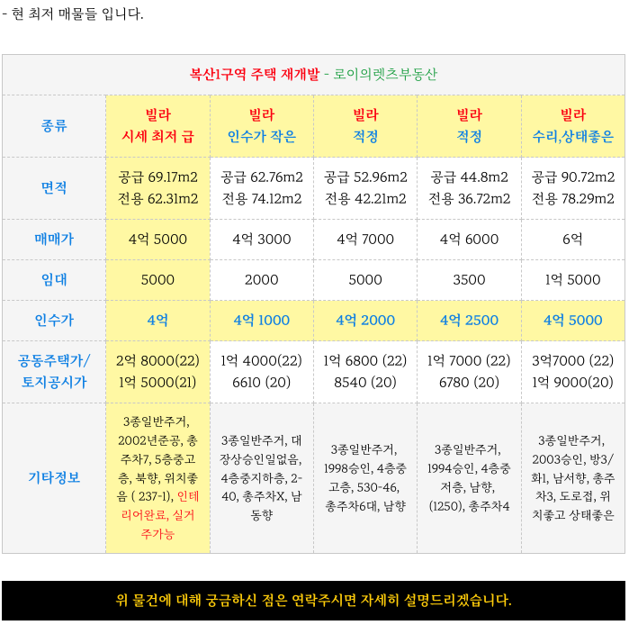 복산1구역 재개발 급매 빌라 매물