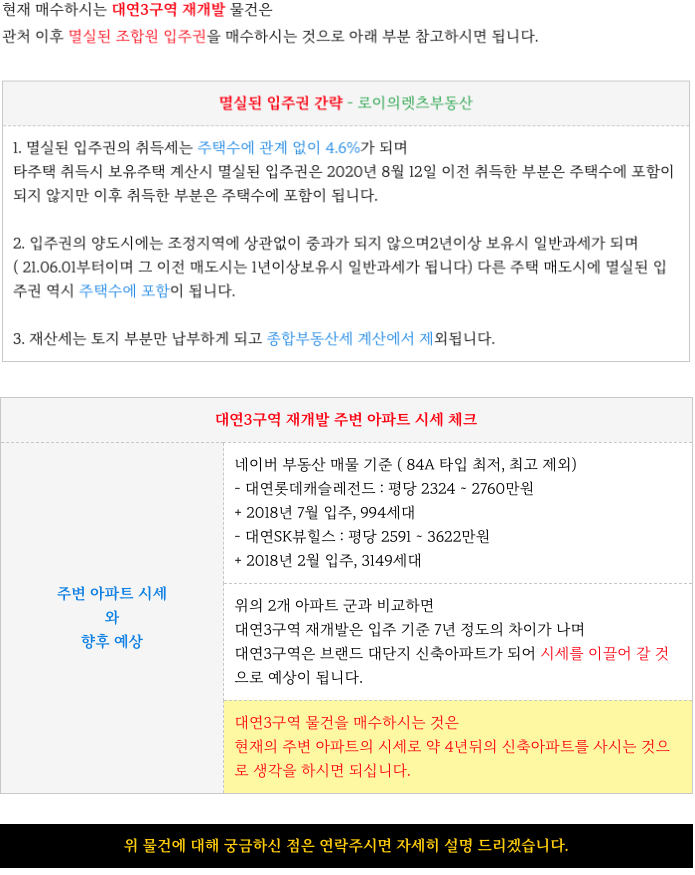 대연3구역 재개발에 관심이 있으신 분들은 연락 주시면 자세히 설명 드리겠습니다.