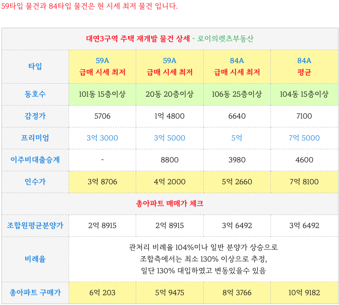 대연3구역 재개발 84타입, 59타입 피 최저 급매물