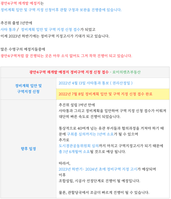 광안4구역 재개발 예정지의 특징 다시 정리등 추가 정보는 아래 페이지를 참고 부탁드립니다.