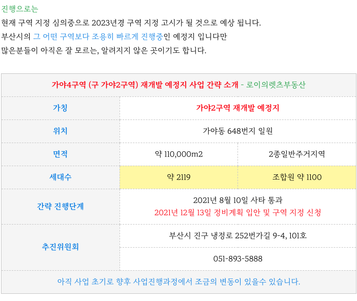 가야4구역 재개발 예정지 지금까지의 진행상황 정리 등 추가 정보는 아래 페이지를 참고 부탁드립니다.