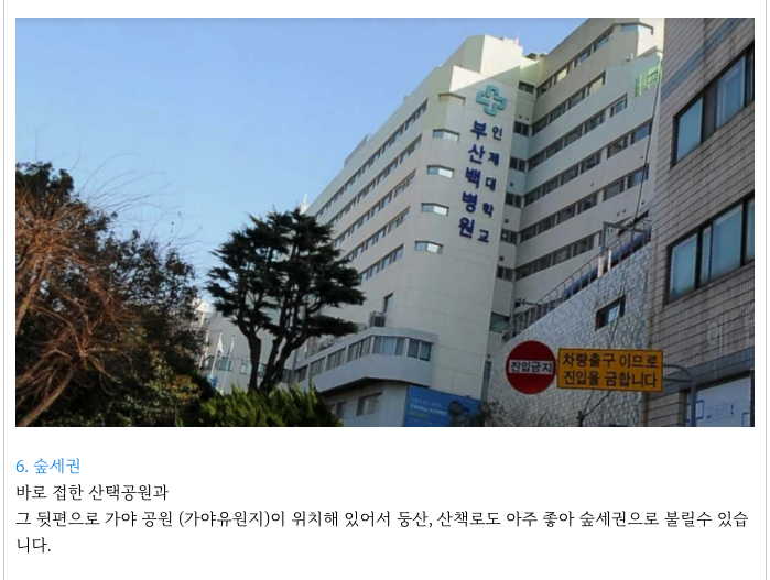 바로 앞으로 대형 마트 홈플러스가 있고 왼쪽으로는 부산 백병원이 위치해 있음은 물론