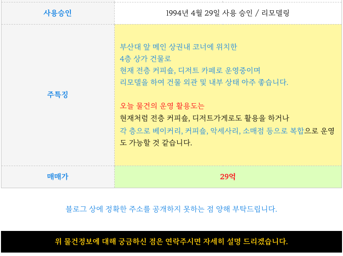 오늘 부산대 장전동 메인상권 4층 상가 빌딩 건물 정보 정리하여 드립니다.