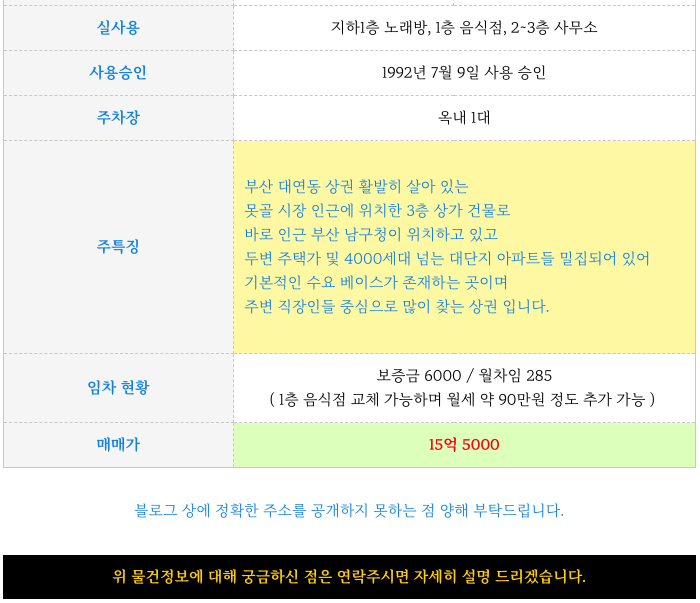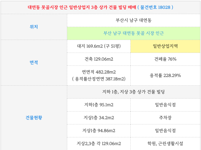 부산 대연동 일반상업지 3층 상가 건물 빌딩 매매