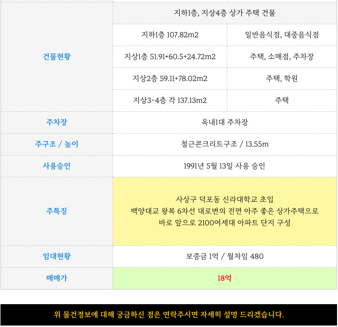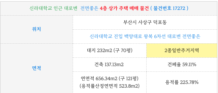 ( 부산 사상 상가) 사상구 덕포동 전면좋은 4층 상가주택 : 6차선대로변