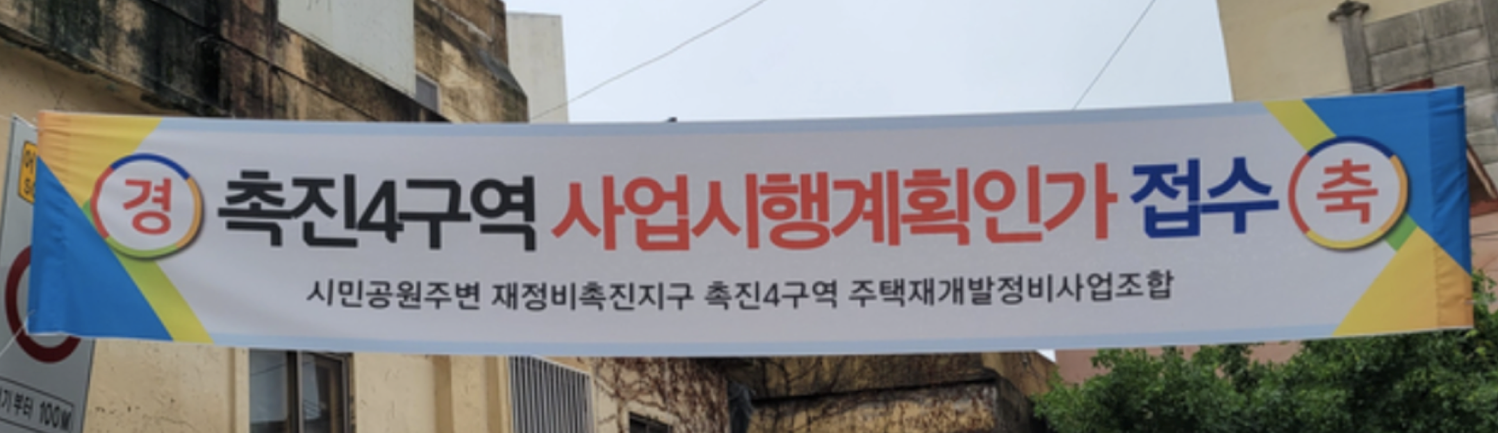 시민공원 촉진4구역 재개발은 각종심의를 거쳐 지난 6월 사업시행계획인가 신청을 하였습니다.