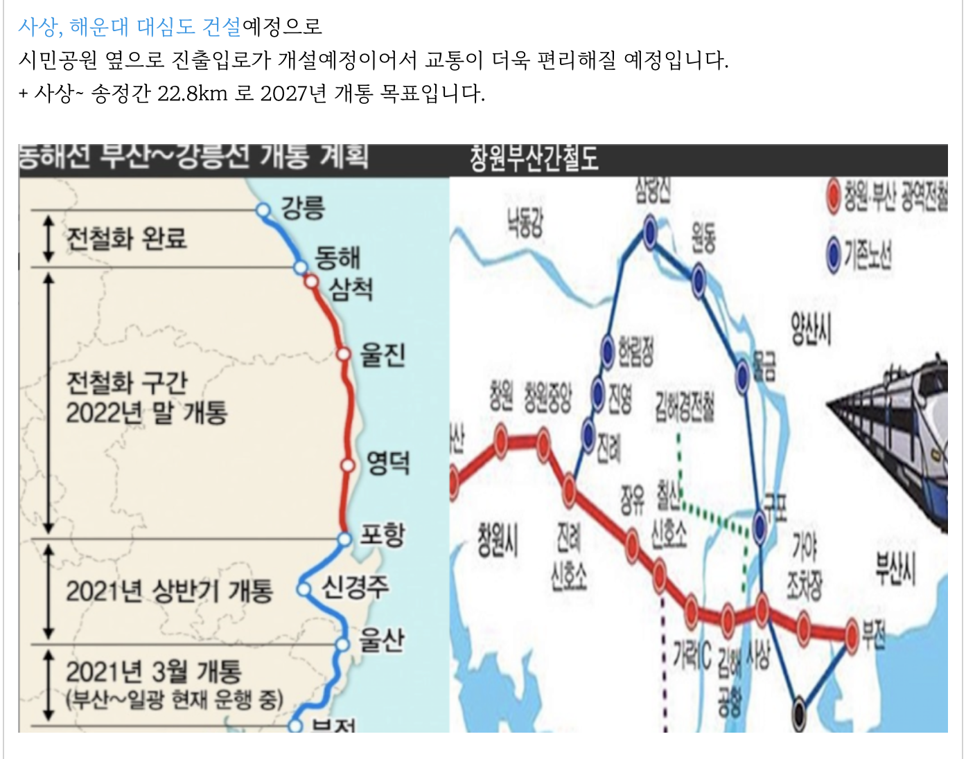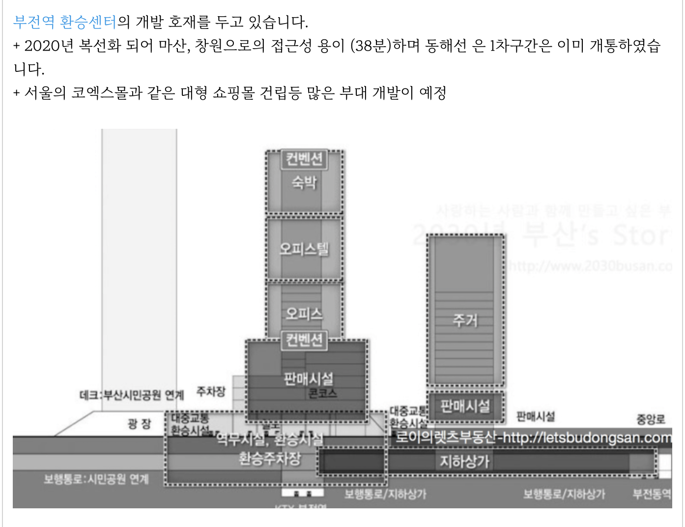 부전역 복합환승센터, 사상~해운대 대심도 등의 개발 호재가 함께 있습니다.