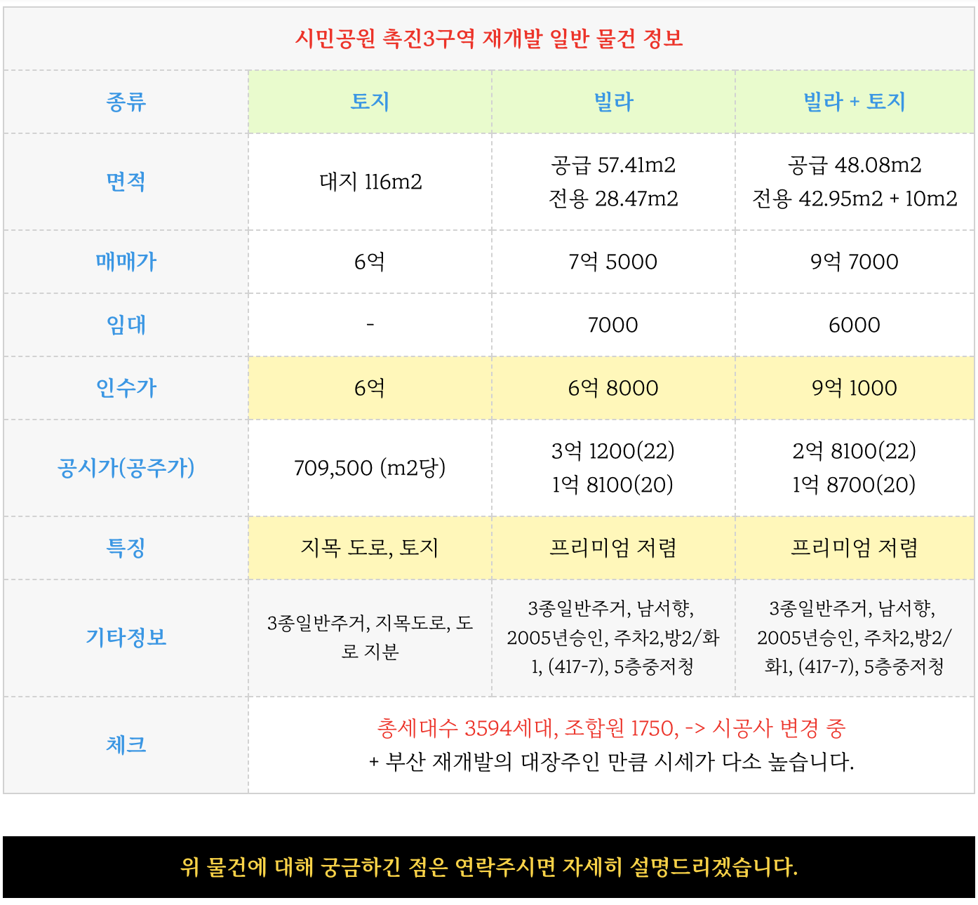 시민공원 촉진3구역 재개발의 물건도 같이 소개해 드립니다.