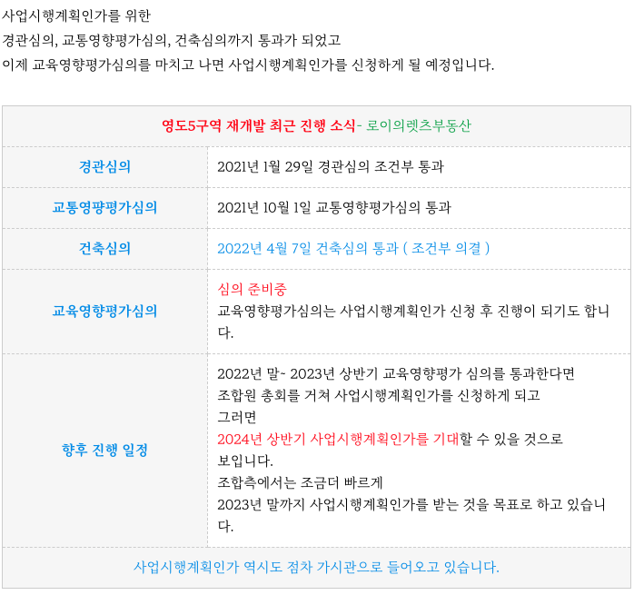 영도5구역 재개발은 사업시행계획인가를 위한 진행 상황을 정리 드립니다.