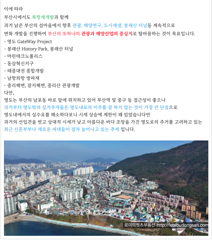 - 영도 초입에 위치 접근성 좋은, 초품아, 중품아, 개발호재 많은 변화기대되는 영도