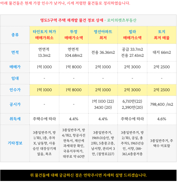 영도5구역 재개발 시세 최저 소액 물건 소개 해드리겠습니다.
