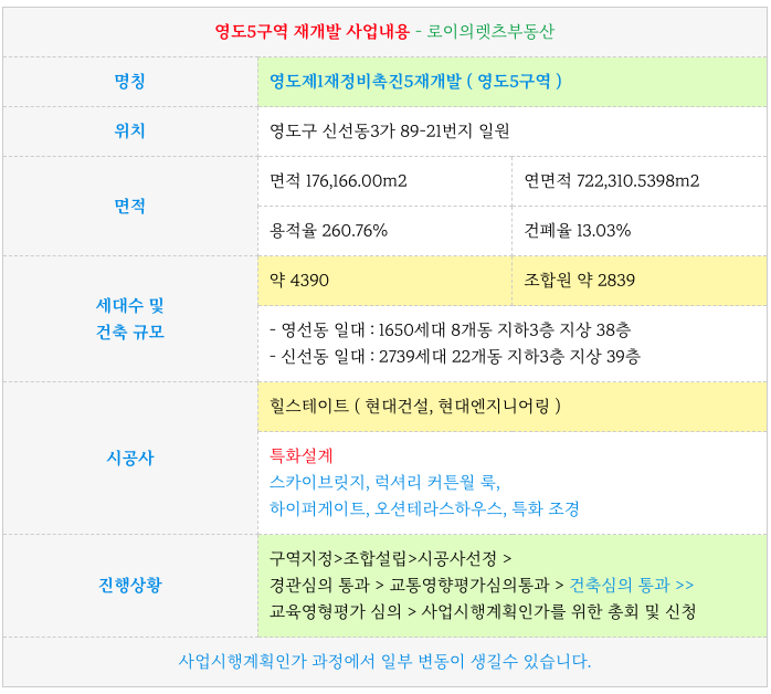 영도5구역 재개발의 진행상황과 향후 예상일정등 추가 정보는 아래 페이지를 참고 부탁드립니다.