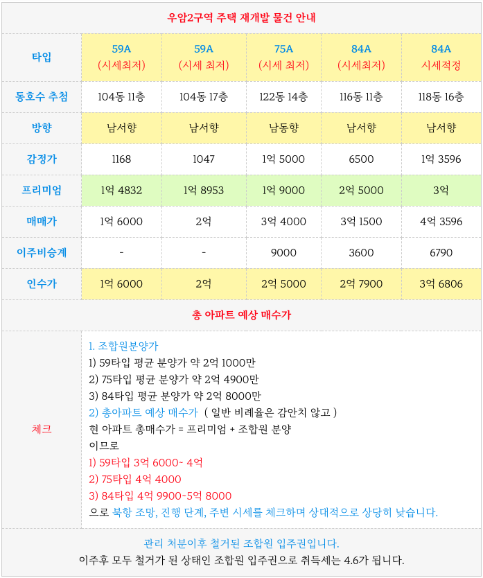 우암2구역 재개발 타입별 급매물