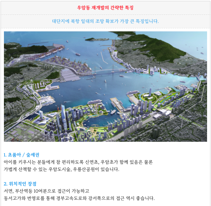 - 북항조망, 초품아, 숲세권, 트램 가능성, 우암해양클러스터