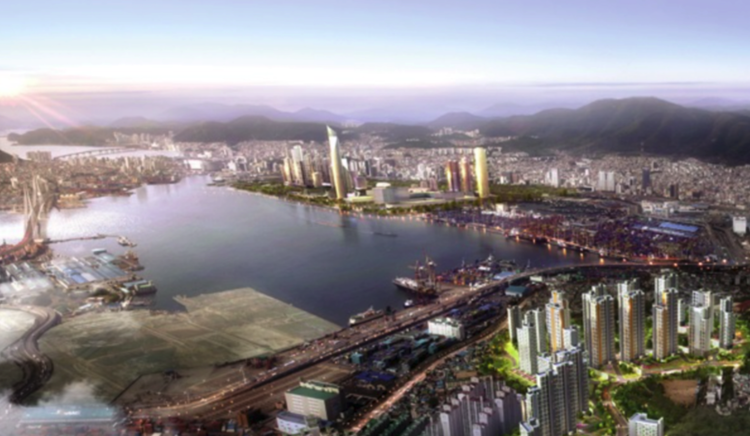북항 일대를 바라보는 바닷가 언덕위의 아파트 단지로 건설이 되어